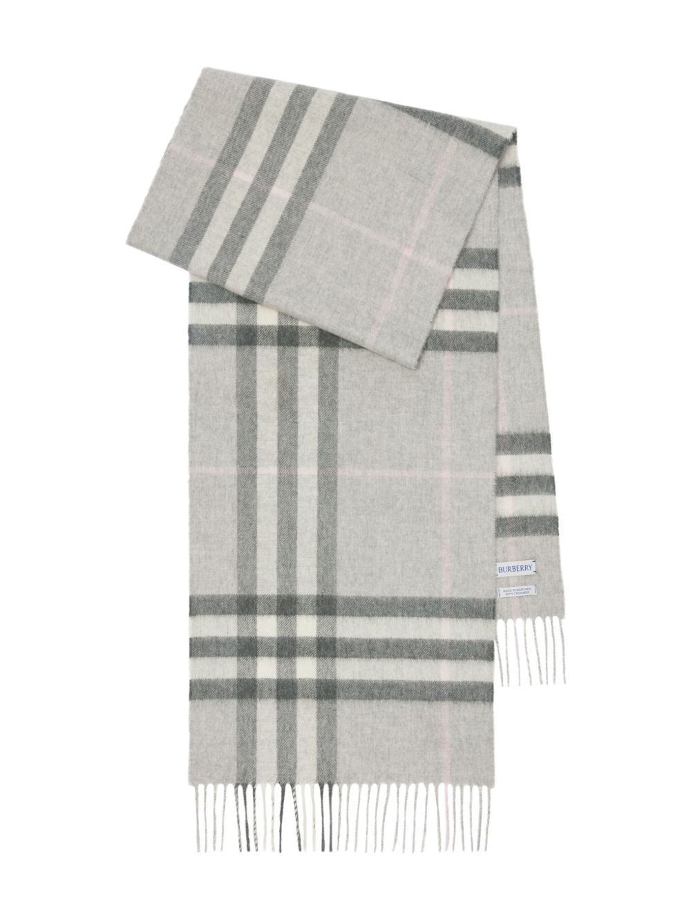 checked cashmere scarf Highlights - Light grey - Wraparound style - Applique logo - Fringed edge - Rectangle shape Made in United Kingdom Composition Cashmere 100% SIZE & FIT Measurement LENGTH 66.14 in(168 cm) WIDTH 11.81 in(30 cm)