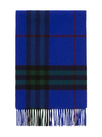 checked cashmere scarf Highlights - Royal blue - Mini logo tag - Fringe detailing - Rectangle shape Made in United Kingdom Composition Cashmere 100% SIZE & FIT Measurement LENGTH 66.14 in(168 cm) WIDTH 11.81 in(30 cm)