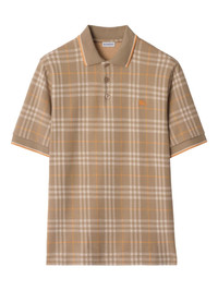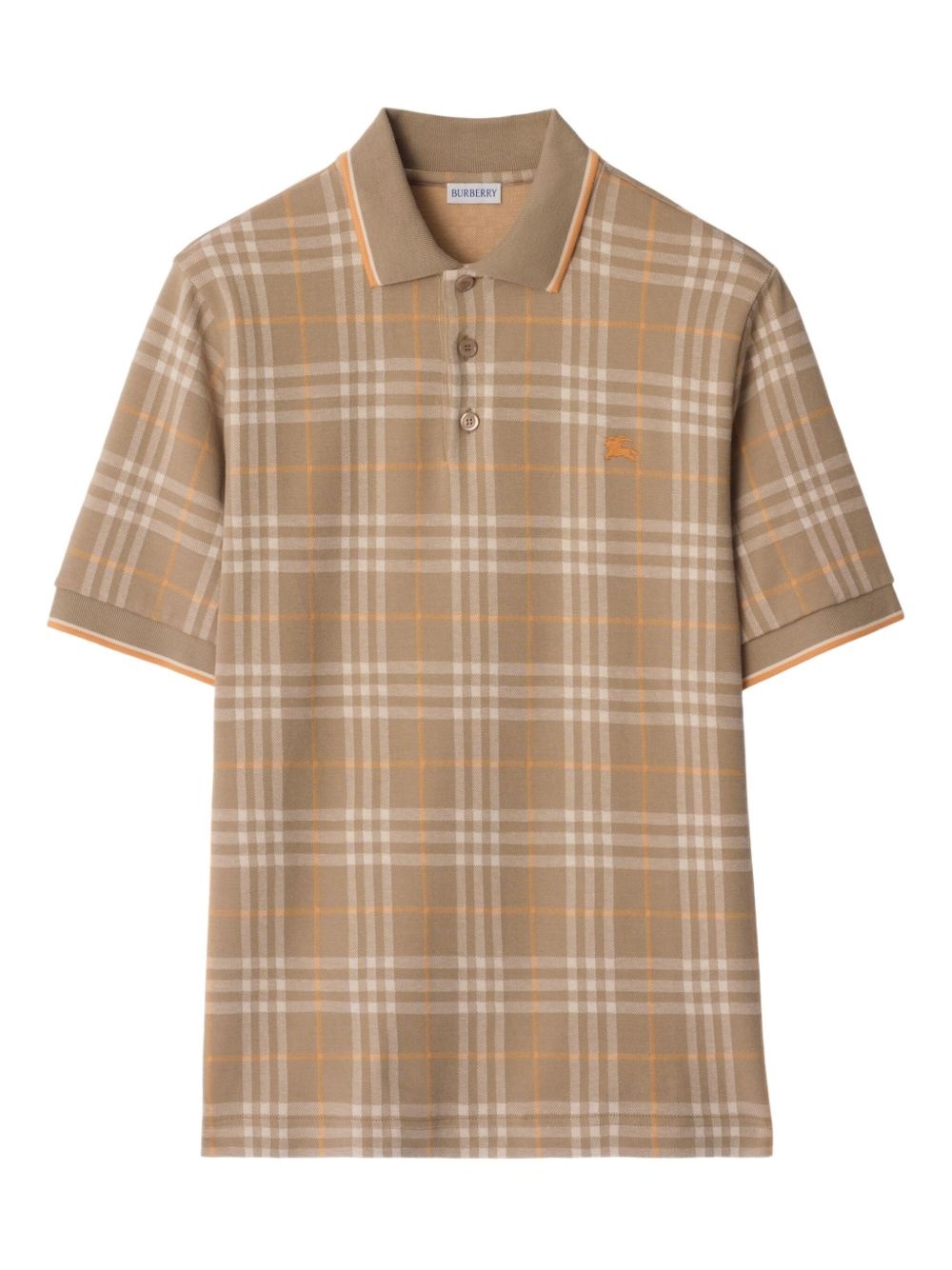 checked cotton polo shirt Highlights - Almond beige - Short front button fastening - Ribbed trim - Signature equestrian knight motif - Short sleeves Imported Composition Cotton 100%