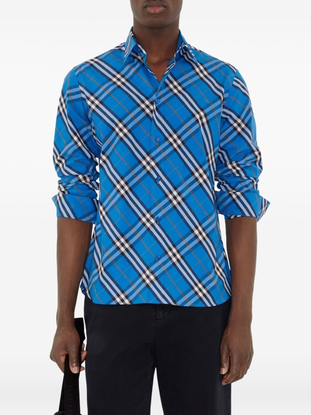checked cotton shirt Highlights - Ocean blue - Front button fastening - Buttoned cuffs - Long sleeves Imported Composition Cotton 100%
