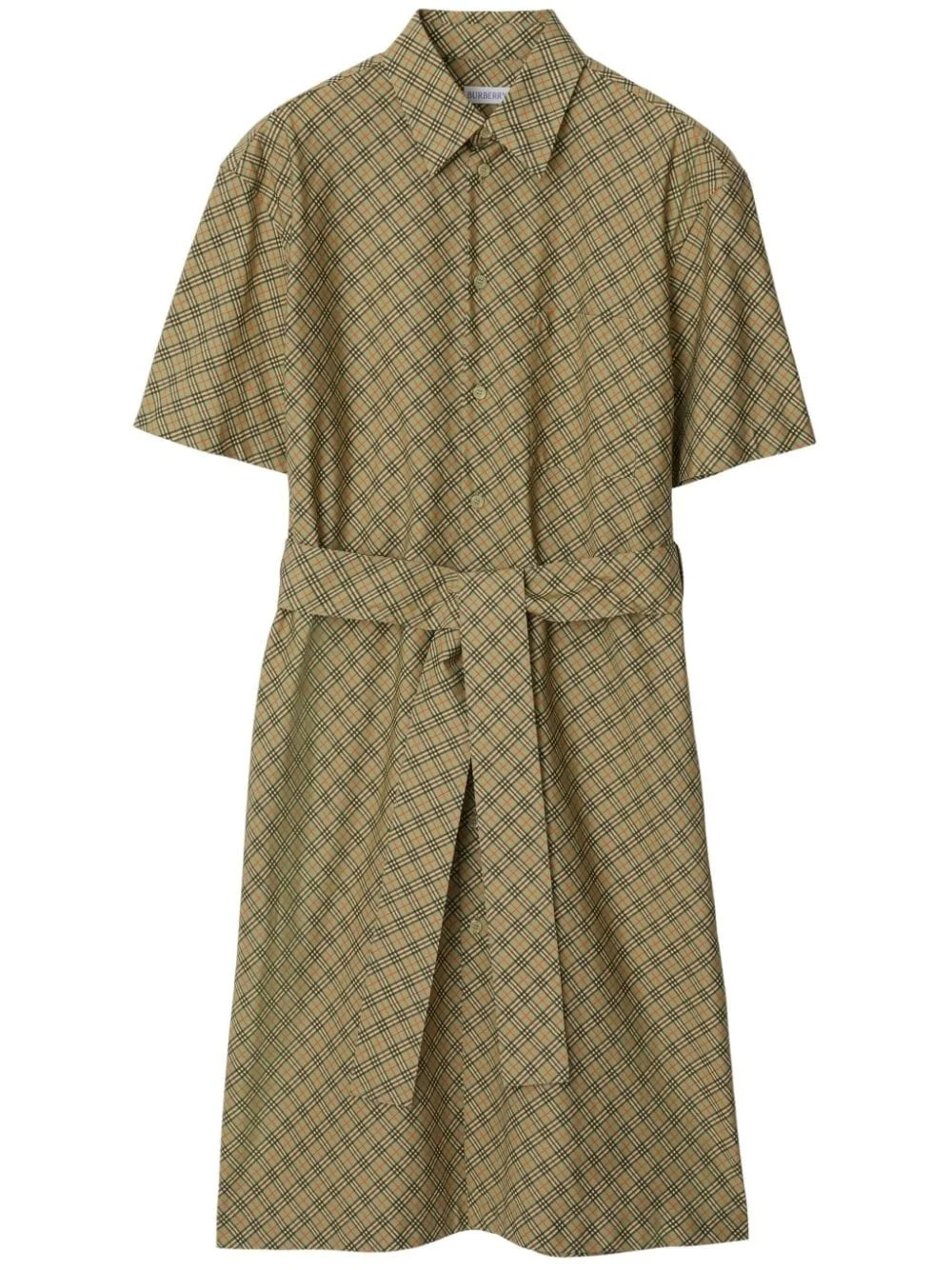 checked cotton shirtdress Highlights - Sage green - Cotton - Nova check pattern - Classic collar - Front button fastening - Short sleeves - Belted waist - Straight hem Imported Composition Mother of Pearl 100%, Cotton 100%