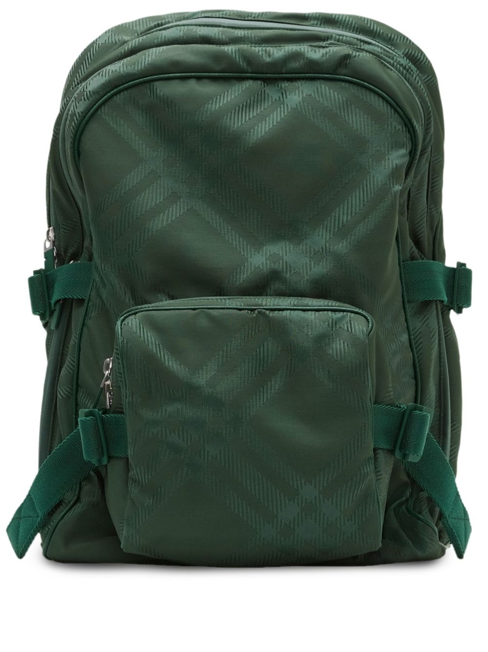 checked jacquard backpack Highlights - Green - Calf leather - Check pattern - Jacquard - Adjustable shoulder straps - Decorative buckle detail - Top zip fastening - Front zip-fastening pocket - Main compartment Made in Italy Composition Lining: Polyamide 100% Outer: Calf Leather 100%, Polyamide 78%, Polyester 22% SIZE & FIT Measurement DEPTH 7.08 in(18 cm) HEIGHT 18.5 in(47 cm) WIDTH 12.2 in(31 cm)