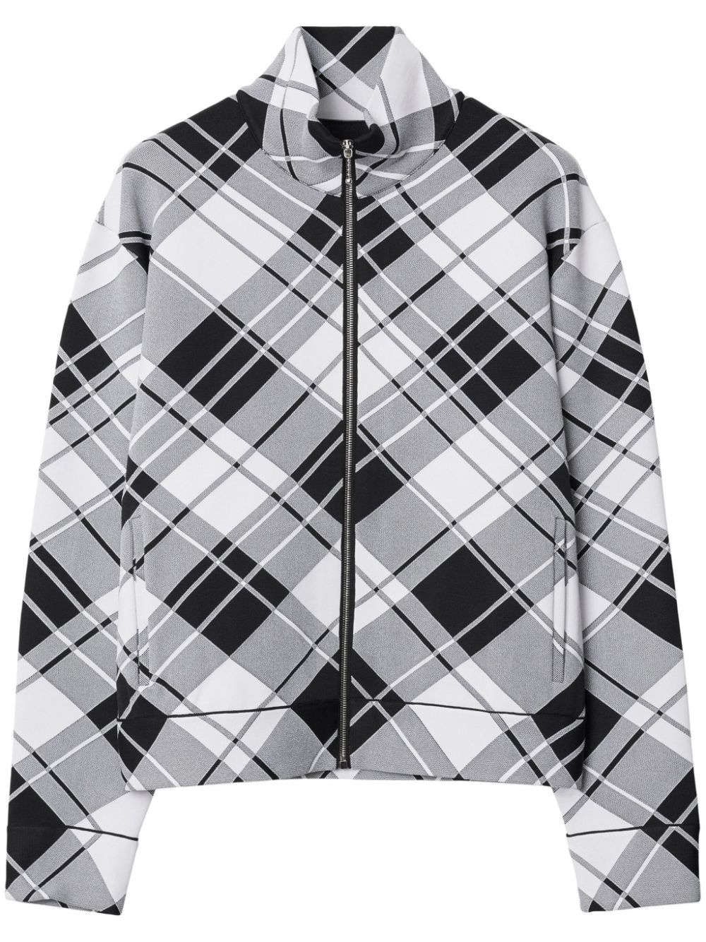 checked lightweight jacket Highlights - Black/white - Check pattern - Funnel neck - Front zip fastening - Long sleeves - Two side welt pockets - Straight hem Made in Italy Composition Polyester 55%, Viscose 33%, Polyamide 11%, Elastane 1%