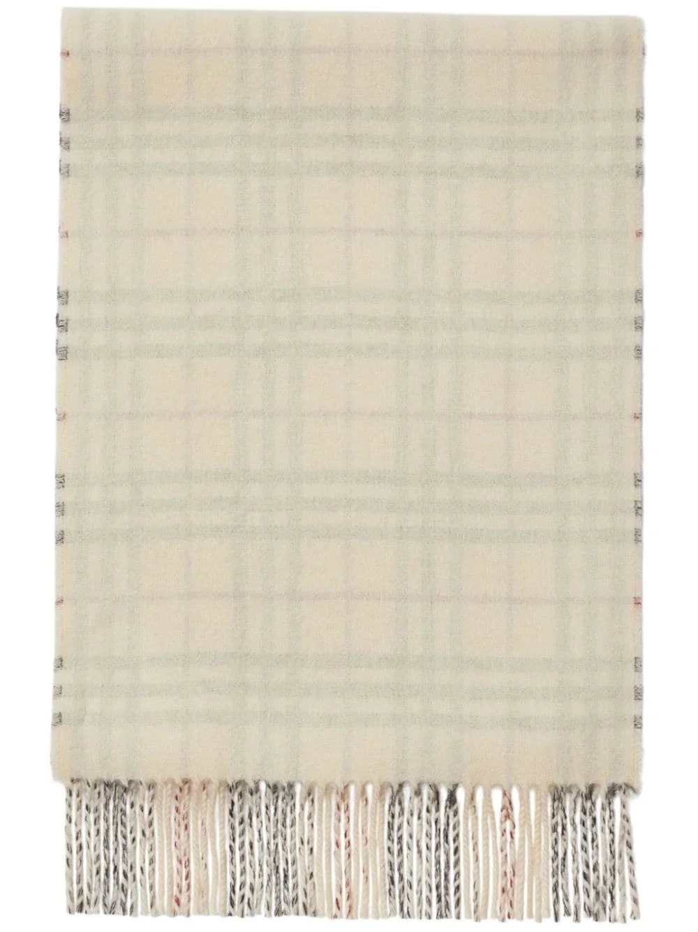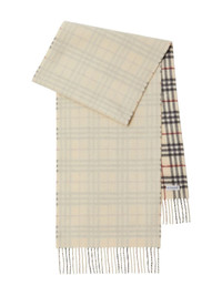 checked reversible cashmere scarf Highlights - Beige - Cashmere - Logo patch to the front - Check pattern - Fringe detailing - Reversible - Wraparound style Made in United Kingdom Composition Cashmere 100% SIZE & FIT Measurement LENGTH 64.96 in(165 cm) WIDTH 12.59 in(32 cm)