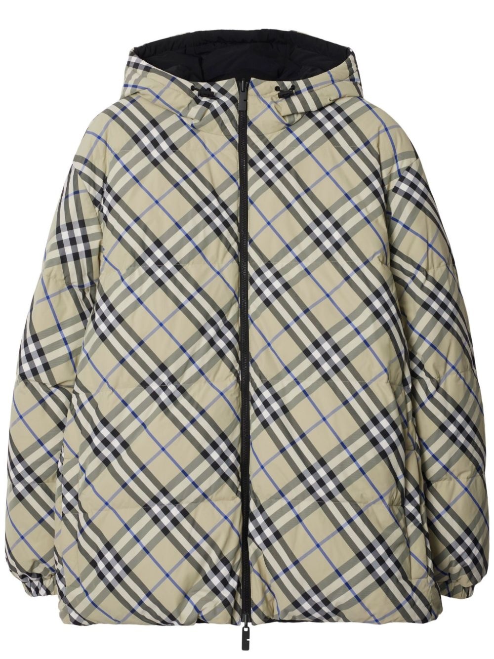 checked reversible down jacket Highlights - Light beige - Two-way zip fastening - Two side zip-fastening pockets - Drawstring hood - Elasticated cuffs Imported Composition Outer: Polyamide 100% Lining: Polyamide 100%, Goose Down 90%, Goose Feather 10% Washing instructions Read Manufacturer Guidelines