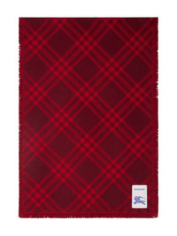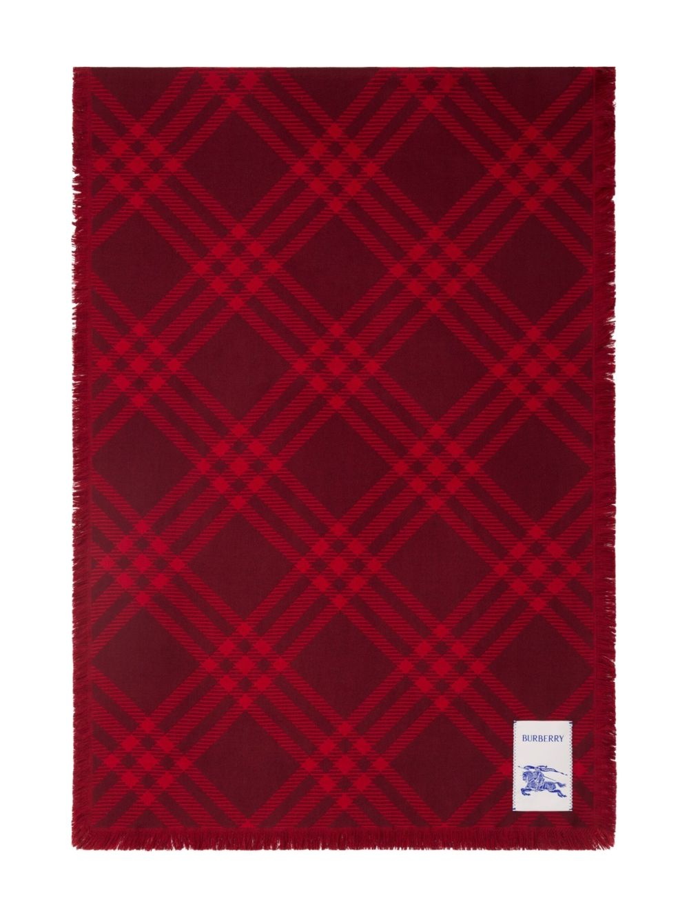 checked scarf Highlights - Blood red - Wraparound style - Signature equestrian knight motif - Frayed edge - Rectangle shape Made in Italy Composition Wool 70%, Silk 30% SIZE & FIT Measurement LENGTH 78.74 in(200 cm) WIDTH 25.59 in(65 cm)