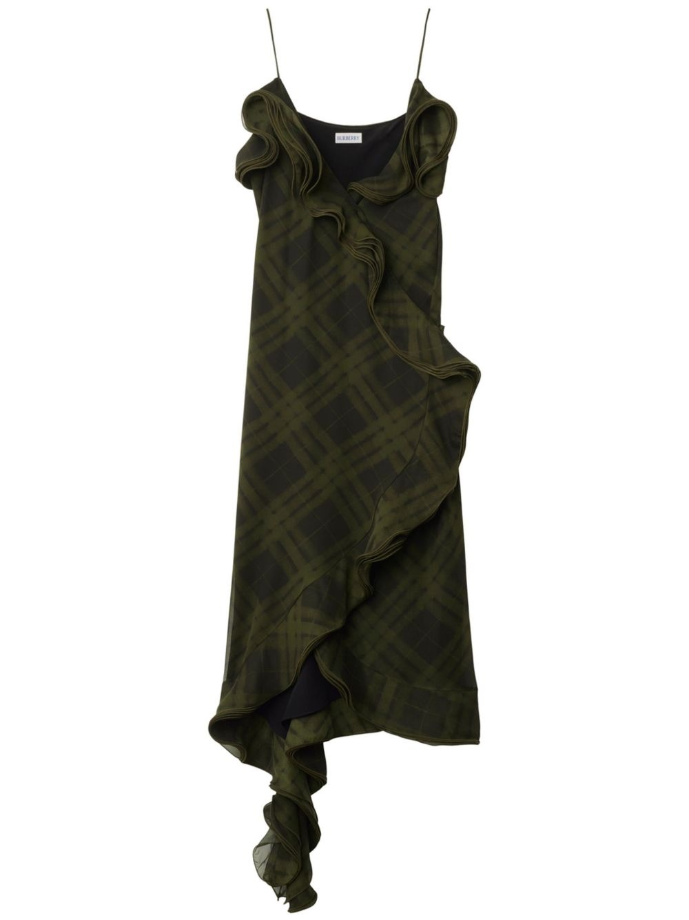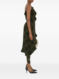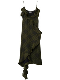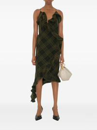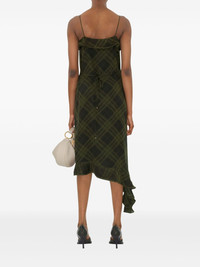 checked silk dress Highlights - Olive green - Side tie fastening - Side button fastening - Ruffled detailing - Thin shoulder straps Made in Italy Composition Lining: Silk 100% Outer: Silk 100%, Mother of Pearl 100%