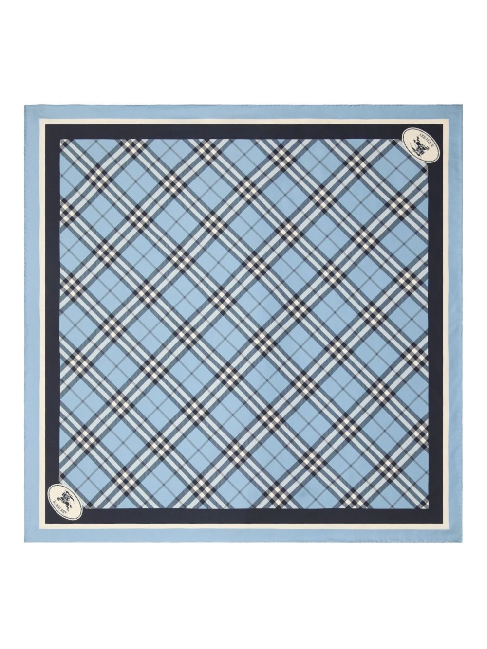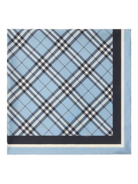checked silk scarf Highlights - Sky blue - Wraparound style - Signature equestrian knight motif - Striped border - Finished edge Made in Italy Composition Silk 100% SIZE & FIT Measurement LENGTH 35.43 in(90 cm) WIDTH 35.43 in(90 cm)