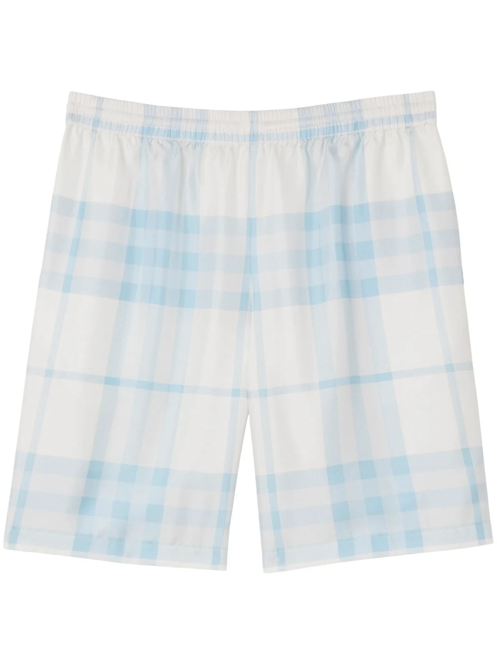 checked silk shorts sky blue/off-white silk check pattern elasticated waistband above-knee length Made in Italy Composition Silk 100%