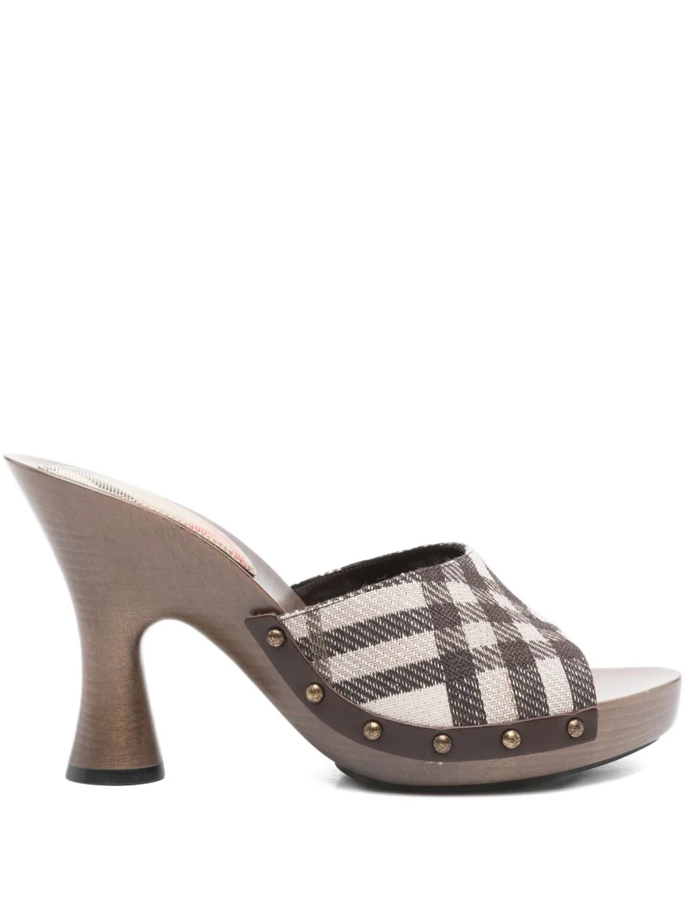 checked studded sandals Highlights - Beige - Check pattern - Studded detail - 10.5mm heel - Open toe - Slip on style - This piece comes complete with a protective dust bag. Made in Italy Composition Outer: Fabric 100% Lining: Wood 100% Sole: Wood 100%, Rubber 100% SIZE & FIT Measurement HEEL 4.13 in(10.5 cm) PLATFORM 0.94 in(2.4 cm)
