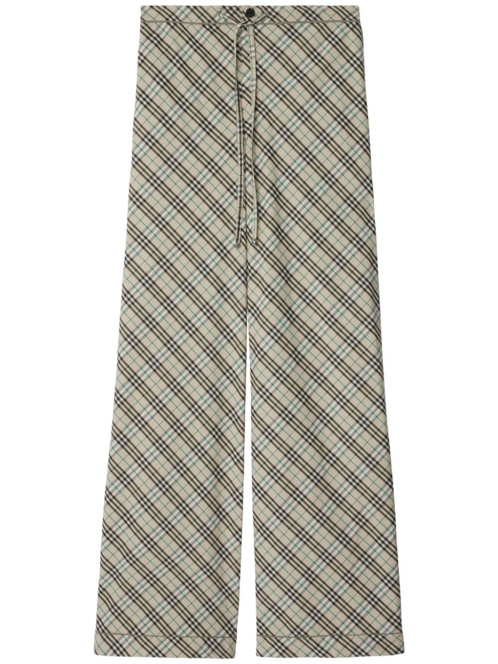 checked trousers Highlights - Stone beige - Cotton - Vintage check pattern - Drawstring waist - Concealed fly and button fastening - Two side inset pockets - Rear patch pocket Imported Composition Outer: Cotton 100%, Mother of Pearl 100% Lining: Cotton 100% SIZE & FIT Measurement FRONT RISE 12.4 in(31.5 cm) INSIDE LEG 31.49 in(80 cm) HIPS 36.22 in(92 cm) WAIST 29.13 in(74 cm)