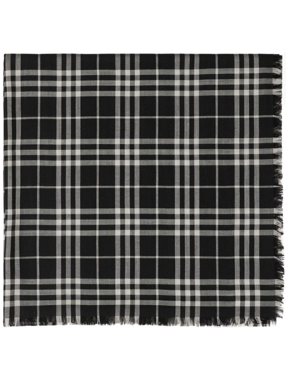 checkered cashmere-blend scarf Highlights - Black/white - Cashmere-silk blend - Plaid check pattern - Frayed edge Made in Italy Composition Cashmere 70%, Silk 30% SIZE & FIT Measurement LENGTH 78.74 in(200 cm) WIDTH 39.37 in(100 cm)