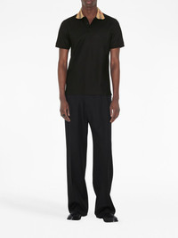 checkered-collar cotton polo shirt Highlights - Black - Cotton - Check print - Contrasting polo collar - Front button placket - Short sleeves - Straight hem Imported Composition Cotton 100% SIZE & FIT Measurement CHEST 35.43 in(90 cm) Washing instructions Read Manufacturer Guidelines