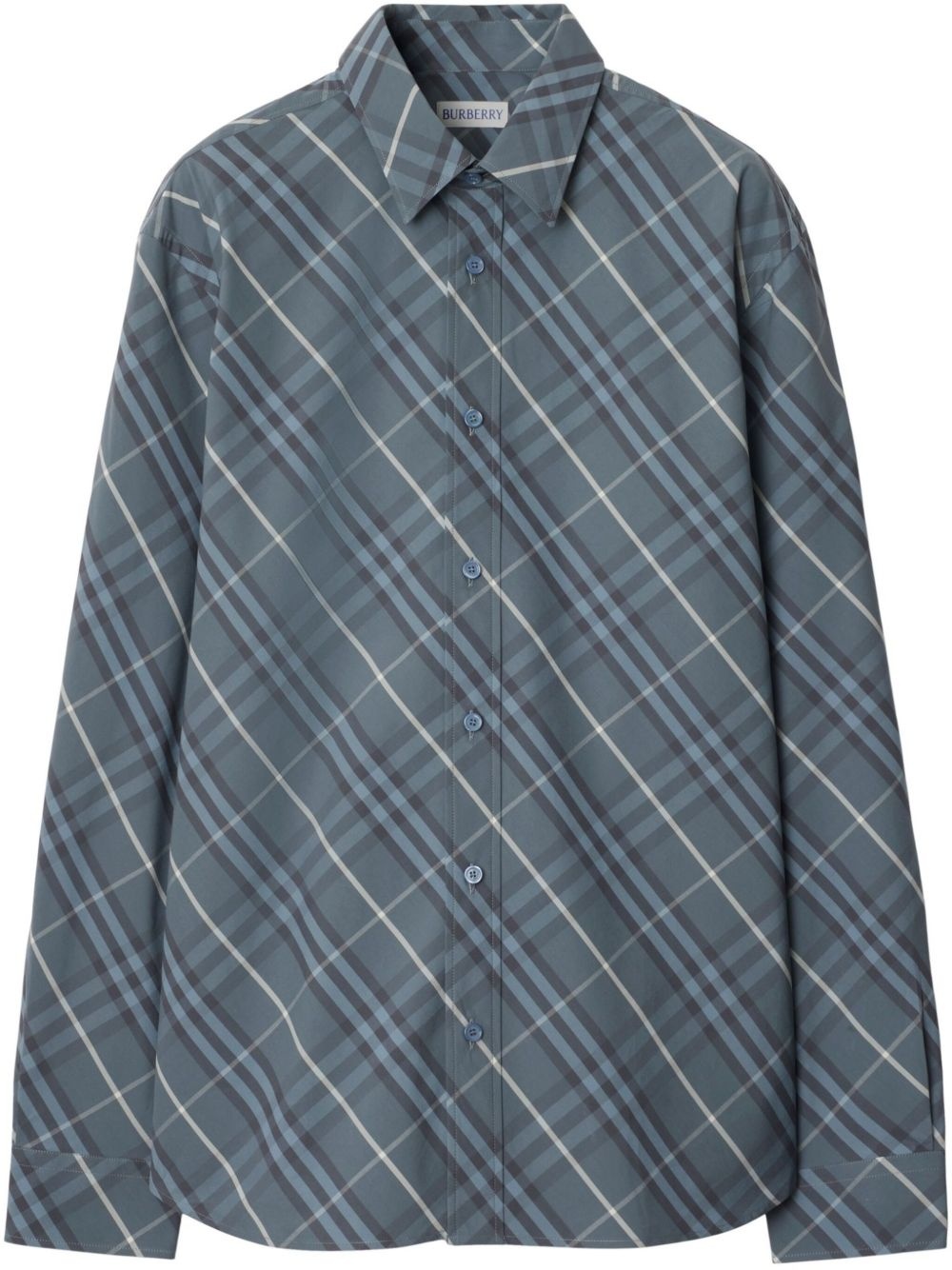 checkered cotton shirt Highlights - Steel blue - Front button fastening - Straight-point collar - Shirt sleeves - Curved hem Imported Composition Mother of Pearl 100%, Cotton 100%