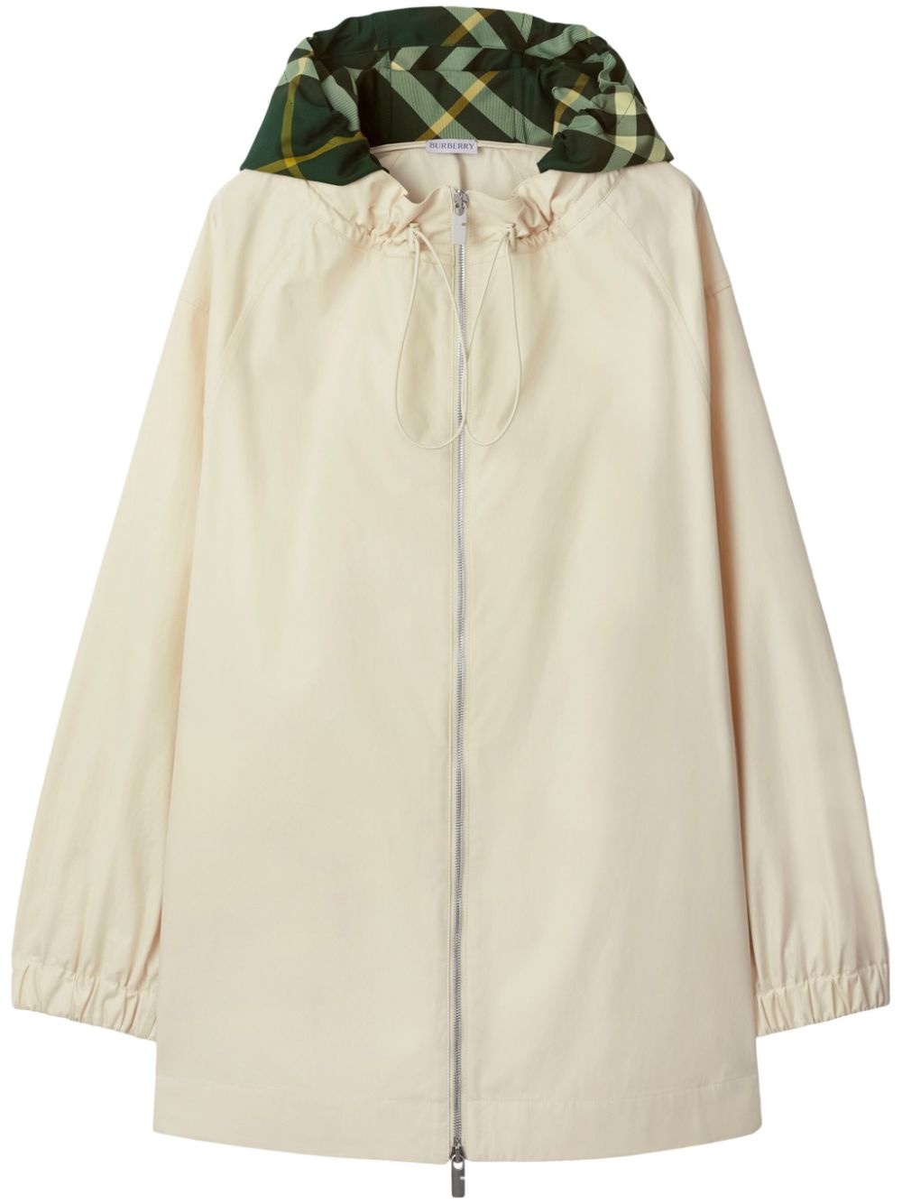 checkered hood cotton parka Highlights - Ivory white/multicolour - Cotton - Check pattern - Slouchy drawstring hood - Front zip fastening - Long sleeves - Elasticated cuffs - Straight hem - Full lining Imported Composition Cotton 100%, Polyester 100% Washing instructions Dry Clean Only