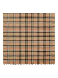 checkered scarf Highlights - Sand beige - Check pattern - Rectangle shape - Frayed edge Made in Italy Composition Wool 54%, Cashmere 46%