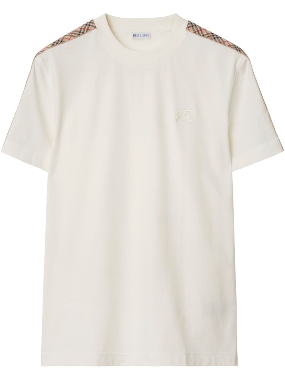 checkered-trim cotton T-shirt Highlights - White - Signature equestrian knight motif - Contrasting trim - Crew neck - Short sleeves Imported Composition Cotton 100%