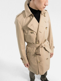 Chelsea Heritage trench coat Burberry's iconic Chelsea trench coat is woven in the brand's signature cotton gabardine material, with a classic beige colourway. A double breasted fastening and belted waist are what defines this style, which is lined with the emblematic Vintage-check pattern. Highlights - Beige - Cotton - Vintage check-pattern lining - Gabardine weave - Double-breasted button fastening - Classic collar - Gun lapel - Epaulettes - Long sleeves - Two side welt pockets - Belted waist - Storm flap - Central rear vent Made in United Kingdom Composition Lining: Viscose 100%, Cotton 100% Outer: Cotton 100%, Calf Leather 100% SIZE & FIT Model measurements Height 6 ft 1 in(1.86 m) Bust/Chest 35.82 in(91 cm) Hips 35.43 in(90 cm) Waist 28.74 in(73 cm) FittingInformation This piece fits true to size. We recommend you get your regular size Cut for a slim fit Made with a mid-weight non-stretch fabric Washing instructions Dry Clean Only