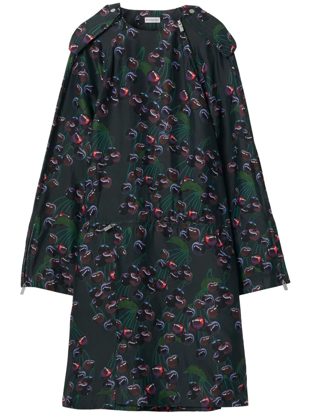 Cherry-print cotton mini dress Highlights - Ivy green/multicolour - Cotton - Cherry print - Epaulettes - Round neck - Off-centre front zip fastening - Long sleeves - Cuff zips - Zip-fastening at waist - Knee-length - Straight hem Made in Italy Composition Viscose 100%, Cotton 100%, Brass 100% Washing instructions Dry Clean Only