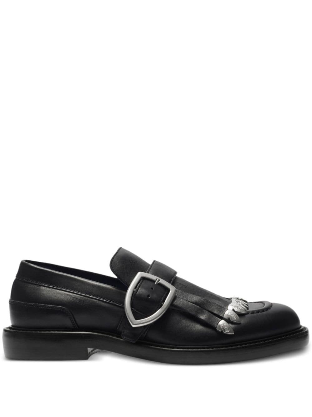 Cobble loafers Highlights - Black - Calf leather - Smooth grain - Buckle-strap fastening - Low block heel - Fringe detailing - Engraved logo - Round toe - Signature equestrian knight motif - Quilted lining - Branded leather insole - Flat sole Made in Italy Composition Lining: Calf Leather 95%, Goat Skin 5% Outer: Calf Leather 100% Sole: Calf Leather 90%, Thermoplastic Polyurethane (TPU) 10%