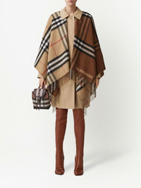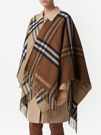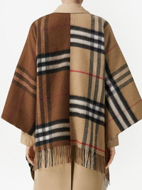 Contrast check fringed cape Highlights - Archive beige/brown - Wool-cashmere blend - Vintage check pattern - Intarsia-knit logo - Fringed edge - Cape design Made in United Kingdom Composition Wool 51%, Cashmere 49% SIZE & FIT Measurement LENGTH 55.11 in(140 cm) WIDTH 55.11 in(140 cm) Washing instructions Dry Clean Only