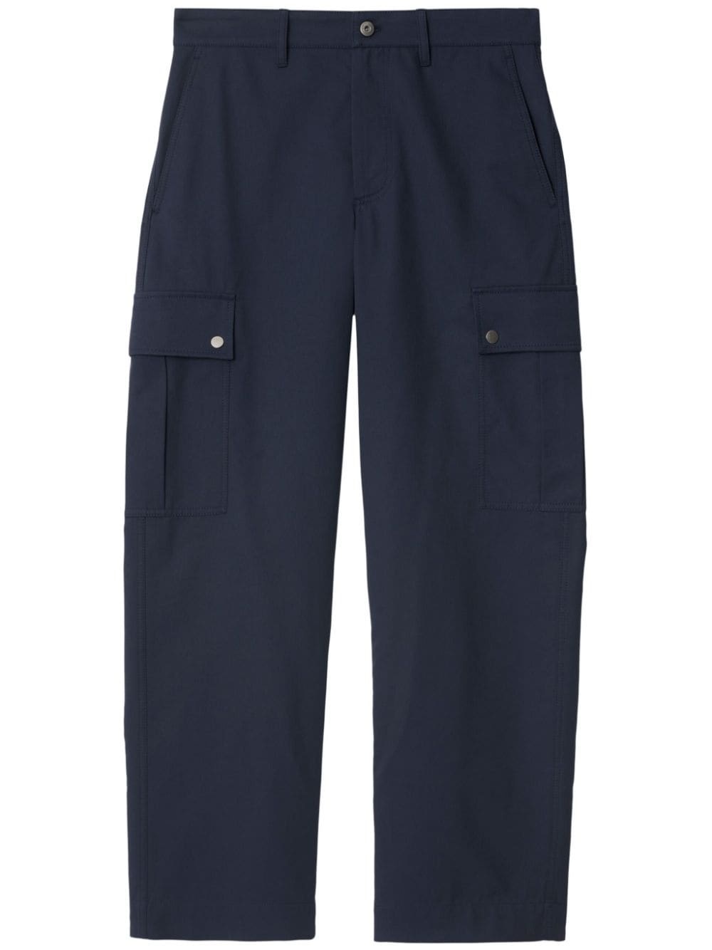 cotton blend cargo trousers Highlights - Navy blue - Cotton blend - Diagonal belt loops - Front button and zip fastening - Slip pockets to the sides - Two press-stud fastening side pockets - Two rear welt pockets Imported Composition Outer: Cotton 51%, Viscose 35%, Polyester 14% Lining: Cotton 100% Washing instructions Dry Clean Only