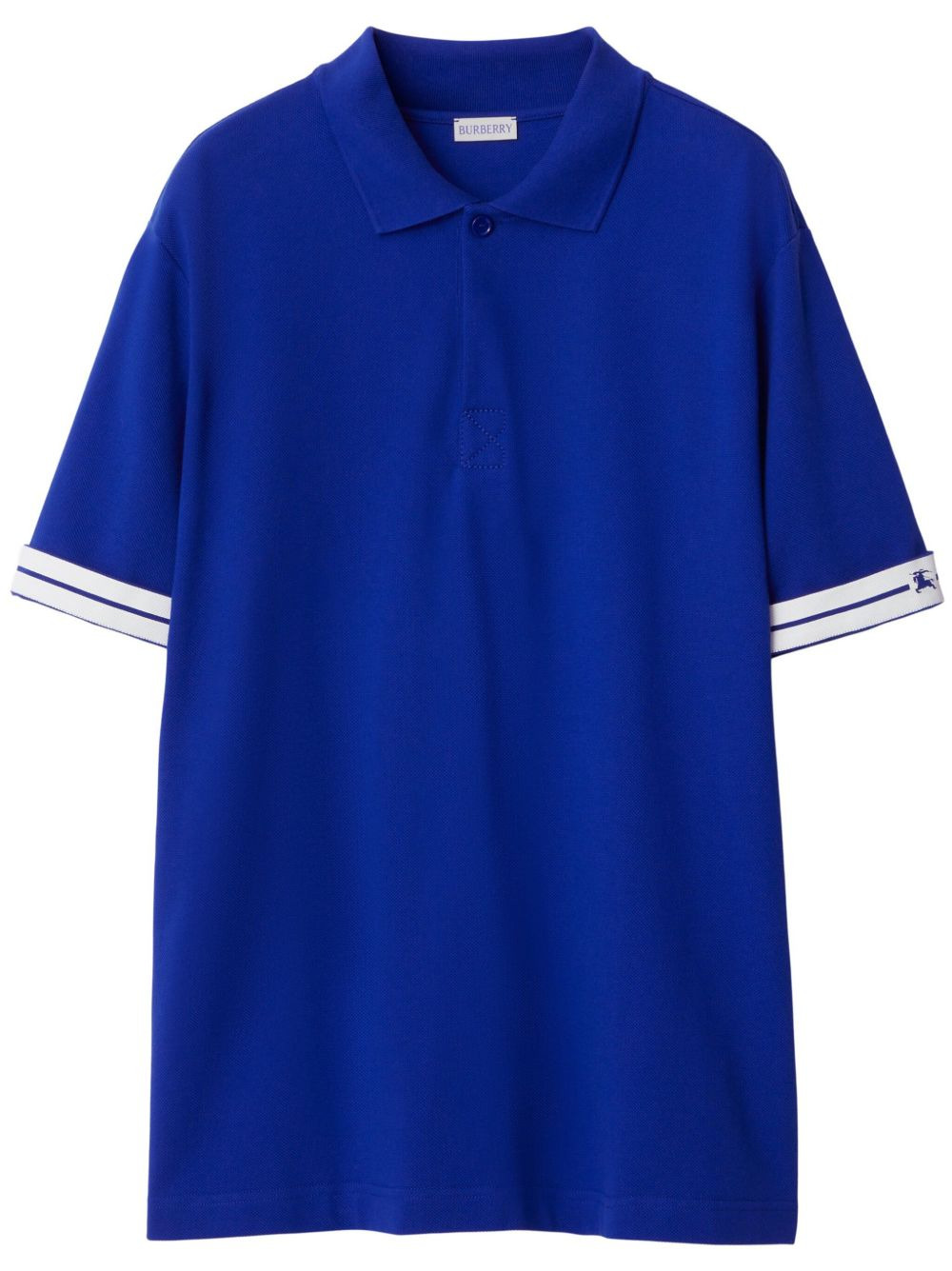 cotton pique polo shirt Cut to a relaxed silhouette with slightly dropped shoulders, Burberry's polo shirt is crafted from cotton pique in a royal-blue colourway. Highlights - Royal blue - Cotton - Pique weave - Polo collar - Front button placket - Drop shoulder - Short sleeves - Straight hem Imported Composition Cotton 100% Washing instructions Read Manufacturer Guidelines