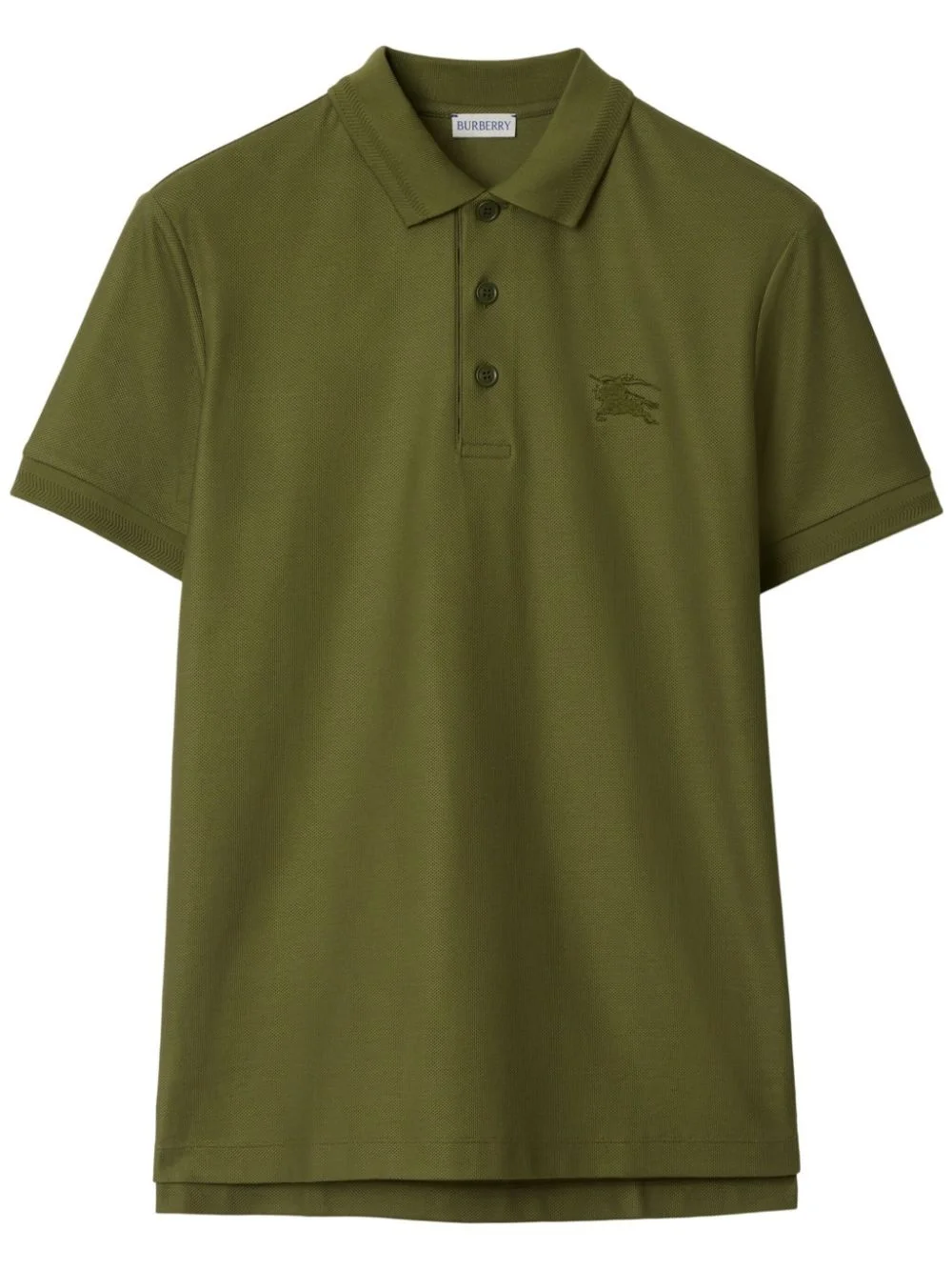 cotton polo shirt Highlights - Olive green - Cotton - Pique weave - Signature equestrian knight motif - Embroidered logo at the chest - Polo collar - Front button placket - Ribbed trim - High-low hem Imported Composition Cotton 100%