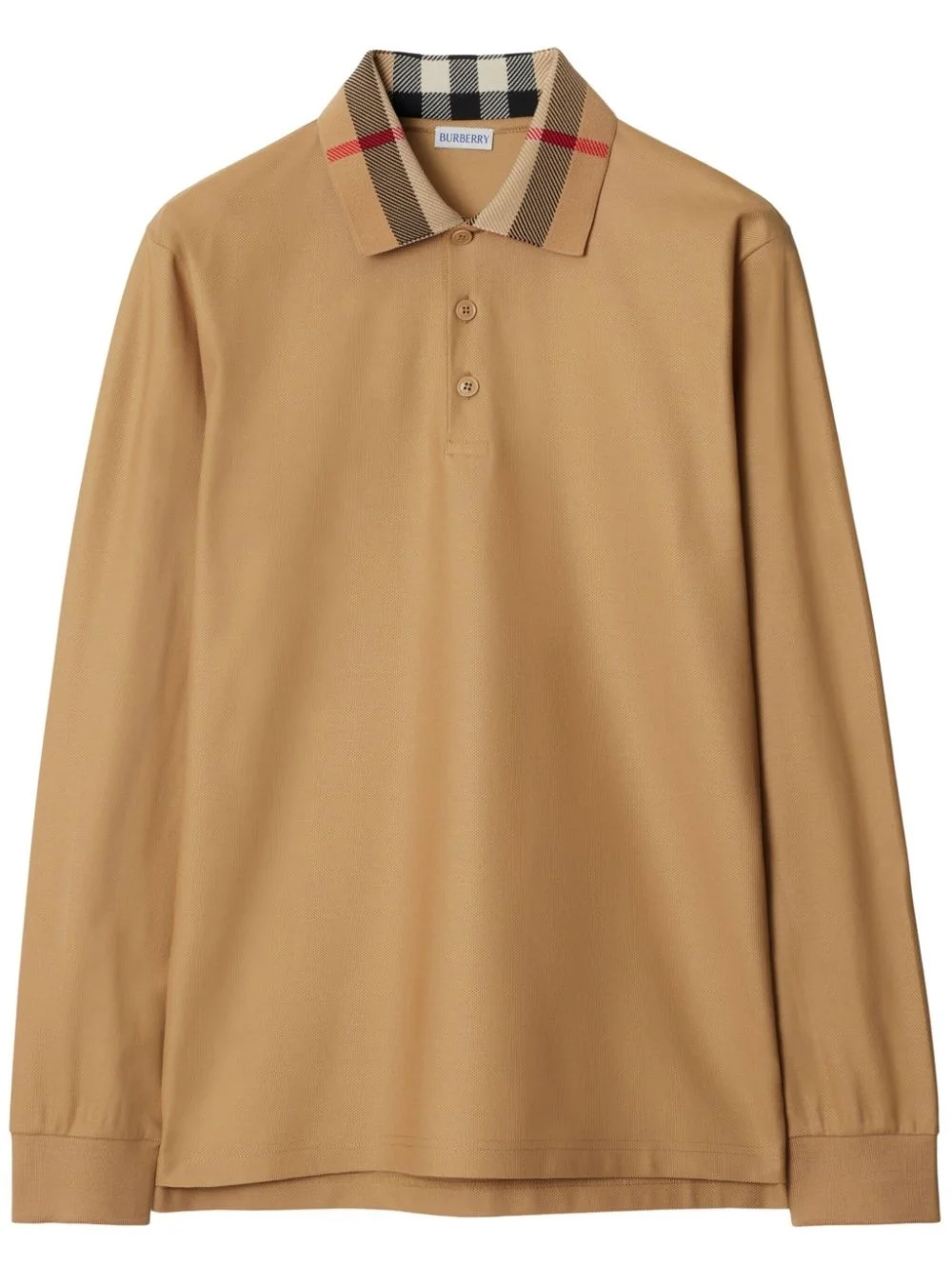 cotton polo shirt Highlights - Archive beige - Cotton - Check print - Contrasting collar - Front button placket - Long sleeves - Straight hem Imported Composition Cotton 100% Washing instructions Read Manufacturer Guidelines