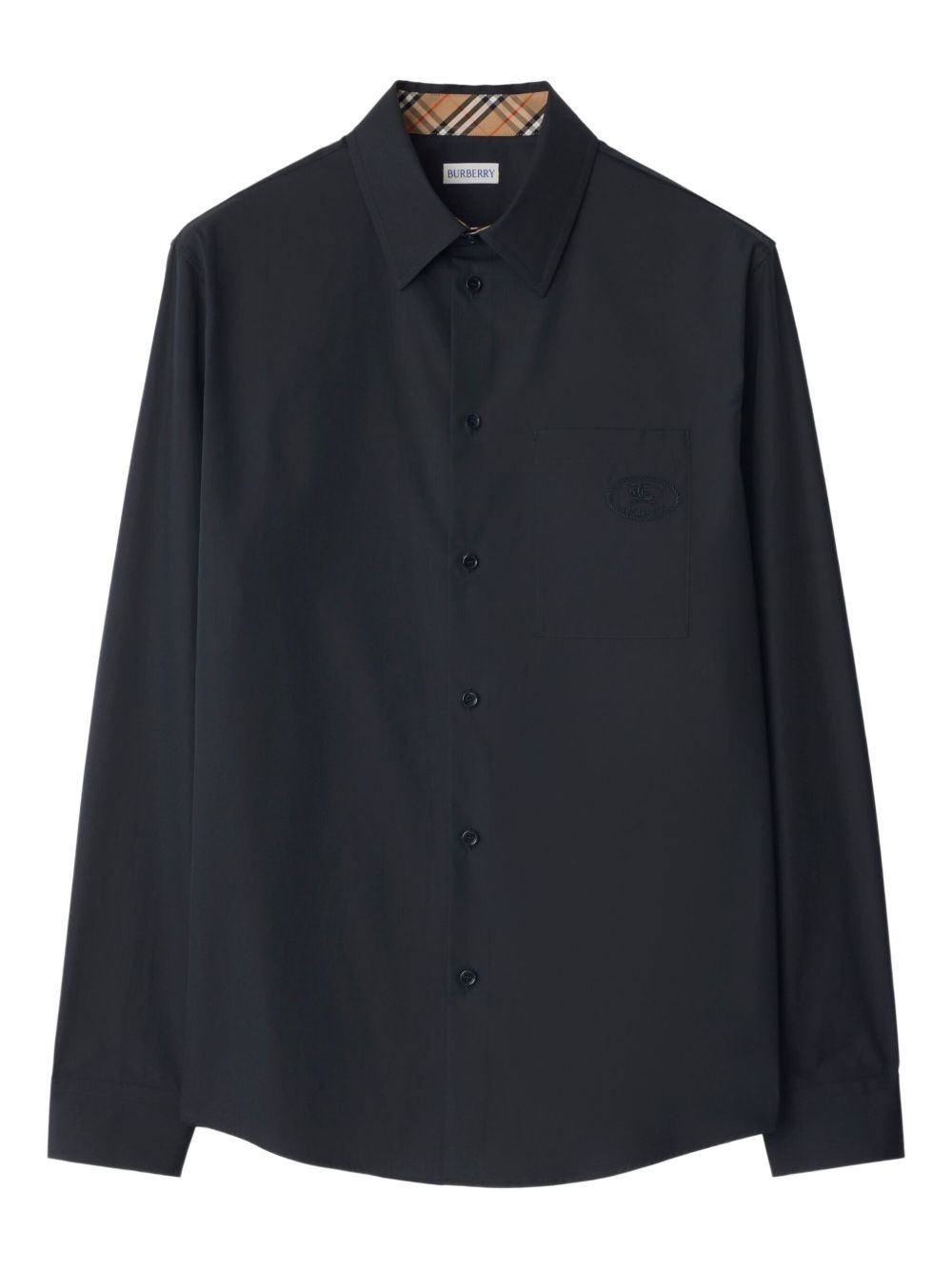 cotton poplin shirt Highlights - Navy blue - Front button fastening - Chest patch pocket - Buttoned-cuff sleeves - Dart detailing Imported Composition Cotton 100% Washing instructions Read Manufacturer Guidelines