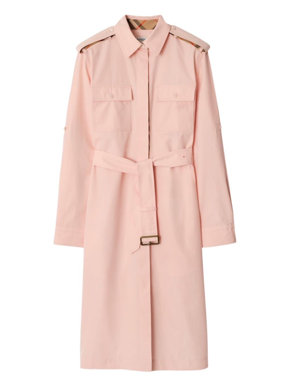 cotton-poplin shirt dress Highlights - Pink - Concealed front button fastening - Belted waist - Two chest flap pockets - Long sleeves Imported Composition Cotton 100% Washing instructions Machine Wash