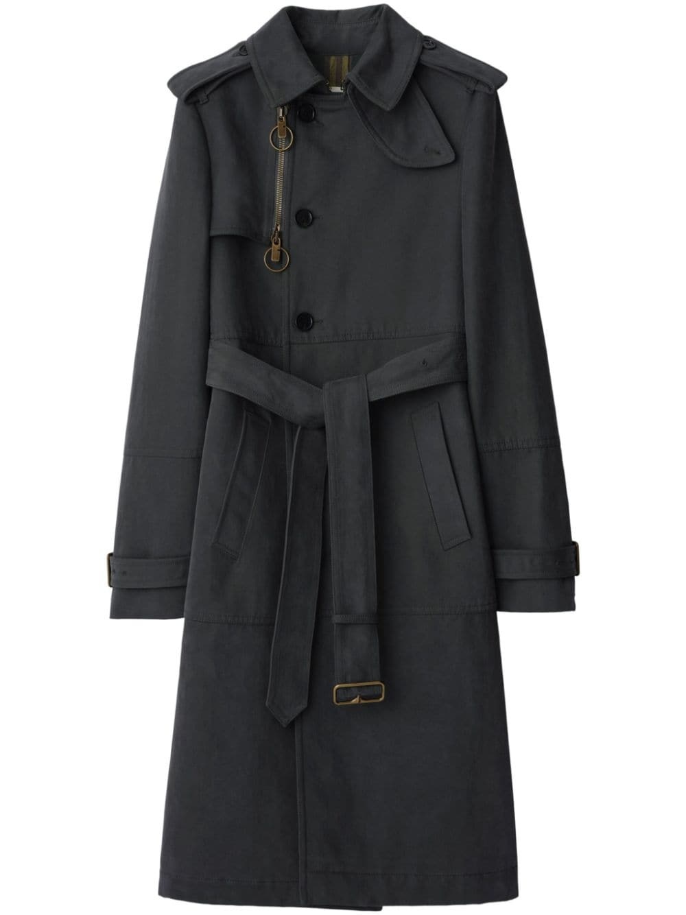 Long trench coat in cotton and nylon Highlights - Dark grey - Cotton - Gabardine weave - Classic collar - Front button and zip fastening - Epaulettes - Long sleeves - Belted cuffs - Belted waist - Two side welt pockets - Straight hem - Long length - Checked lining Made in Italy Composition Lining: Cotton 100%, Viscose 100% Outer: Buffalo Horn 100%, Cotton 75%, Polyamide 25%