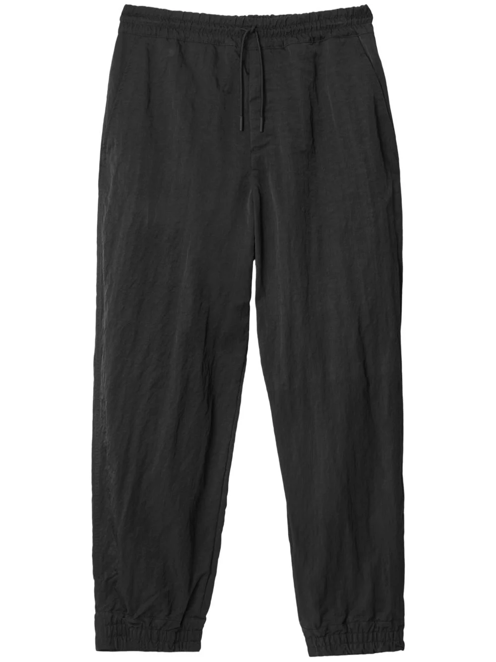 crinkled-finish straight-leg trousers Highlights - Black - Crinkled finish - Elasticated drawstring waistband - Two side slash pockets - Rear zip-fastening pocket - Straight leg - Elasticated ankles - Press-stud fastening ankles Imported Composition Outer: Polyamide 100% Lining: Cotton 100% Washing instructions Dry Clean Only