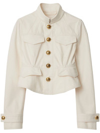 cropped cotton jacket Highlights - White - Front button fastening - Four front flap pockets - Stand-up collar - Belted cuffs Made in Italy Composition Lining: Cotton 100% Outer: Cotton 100%