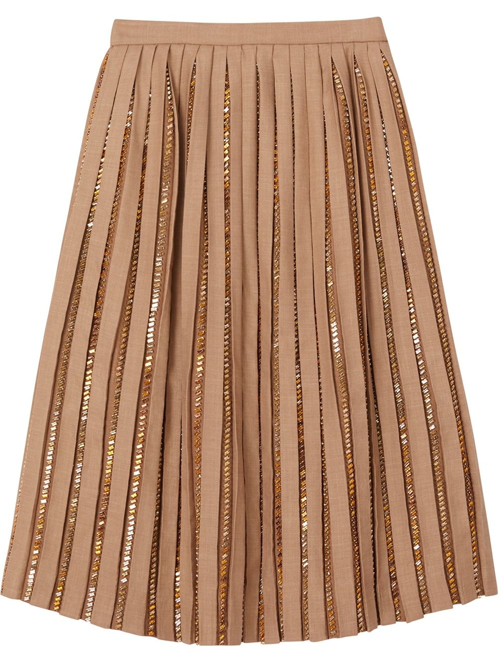 Crystal Detail Plissé Soleil Wool Silk Blend Skirt