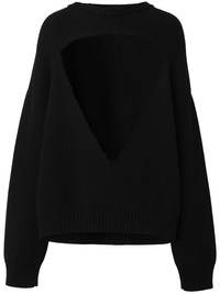 cut-out wool jumper black wool blend ribbed knit cut-out detailing crew neck drop shoulder long sleeves straight hem Made in Italy Composition Wool 98%, Elastane 2% Washing instructions Specialist Cleaning