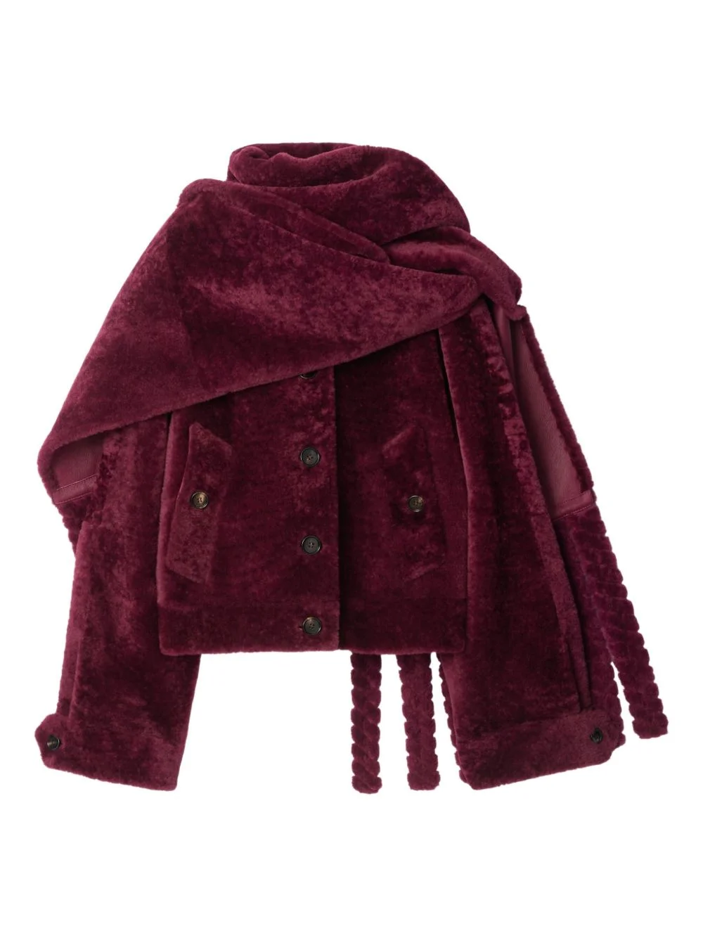 detachable-scarf shearling jacket Highlights - Red - Double-faced shearling - Epaulettes - Button closure - Button-tab cuffs - Detachable scarf - Chunky fringing Made in Italy Composition Sheep Skin/Shearling 100% Washing instructions Read Manufacturer Guidelines