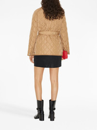 diamond-quilted belted jacket Burberry is renowned for its traditional looks and this black jacket is a fine example. Characterised by its classic diamond quilted finish, it is made unique with a corduroy collar that nods to the brand's British sense of style. Highlights - Archive beige - Diamond quilting - Corduroy collar - Front press-stud and zip fastening - Long sleeves - Press-stud fastening cuffs - Belted waist - Two side patch pockets - Straight hem - English rear vents - Vintage check-pattern lining Imported Composition Outer: Polyamide 100% Lining: Polyester 100% Filling: Polyester 100% SIZE & FIT Measurement SLEEVE LENGTH 29.13 in(74 cm) LENGTH 28.74 in(73 cm) Washing instructions Dry Clean Only