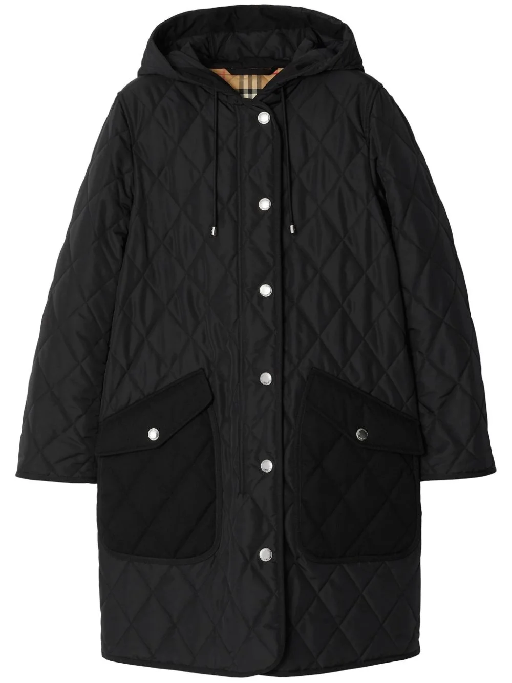 diamond-quilted hooded coat Highlights - Black - Diamond quilting - Drawstring hood - Front press-stud and zip fastening - Long sleeves - Two front patch pockets - Mid-length Imported Composition Lining: Cotton 100% Outer: Polyamide 100% Washing instructions Specialist Cleaning
