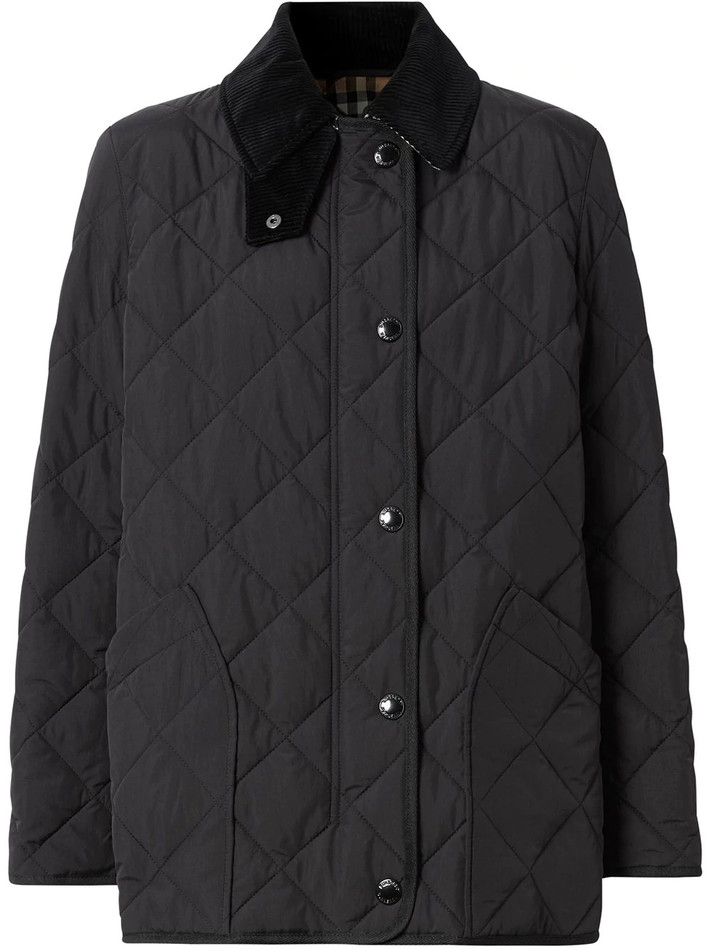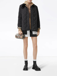 diamond quilted thermoregulated barn jacket A quintessentially British brand, Burberry creates iconic designs that seamlessly infuse their rich heritage with a contemporary aesthetic. A corduroy collar barn jacket in nylon, featuring a Vintage check lining and a leather patch embossed with a refreshed logo. The quilted design is engineered with 37.5 thermoregulation technology to accelerate evaporation and breathability, so you never feel too hot or cold. Imported Composition Lining: Cotton 70%, Polyester 30% Outer: Calf Leather 100%, Polyamide 100% SIZE & FIT Measurement LENGTH 27.55 in(70 cm) Washing instructions Machine Wash