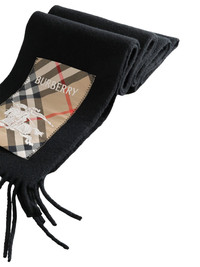 EKD-applique fringed scarf Highlights - Black - Equestrian knight motif - Vintage check pattern detail - Fringed trim Made in United Kingdom Composition Cashmere 100%