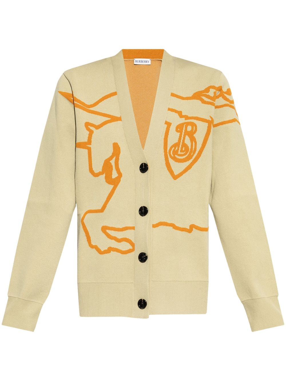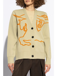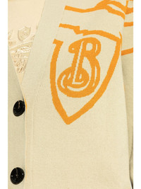 EKD cotton-blend cardigan Highlights - Sesame beige/tangerine orange - Cotton blend - Knitted construction - Patterned jacquard - Ribbed v-neck - Front button fastening - Long sleeves - Ribbed cuffs and hem - Straight hem Made in Italy Composition Cotton 96%, Nylon 3%, Elastane 1%