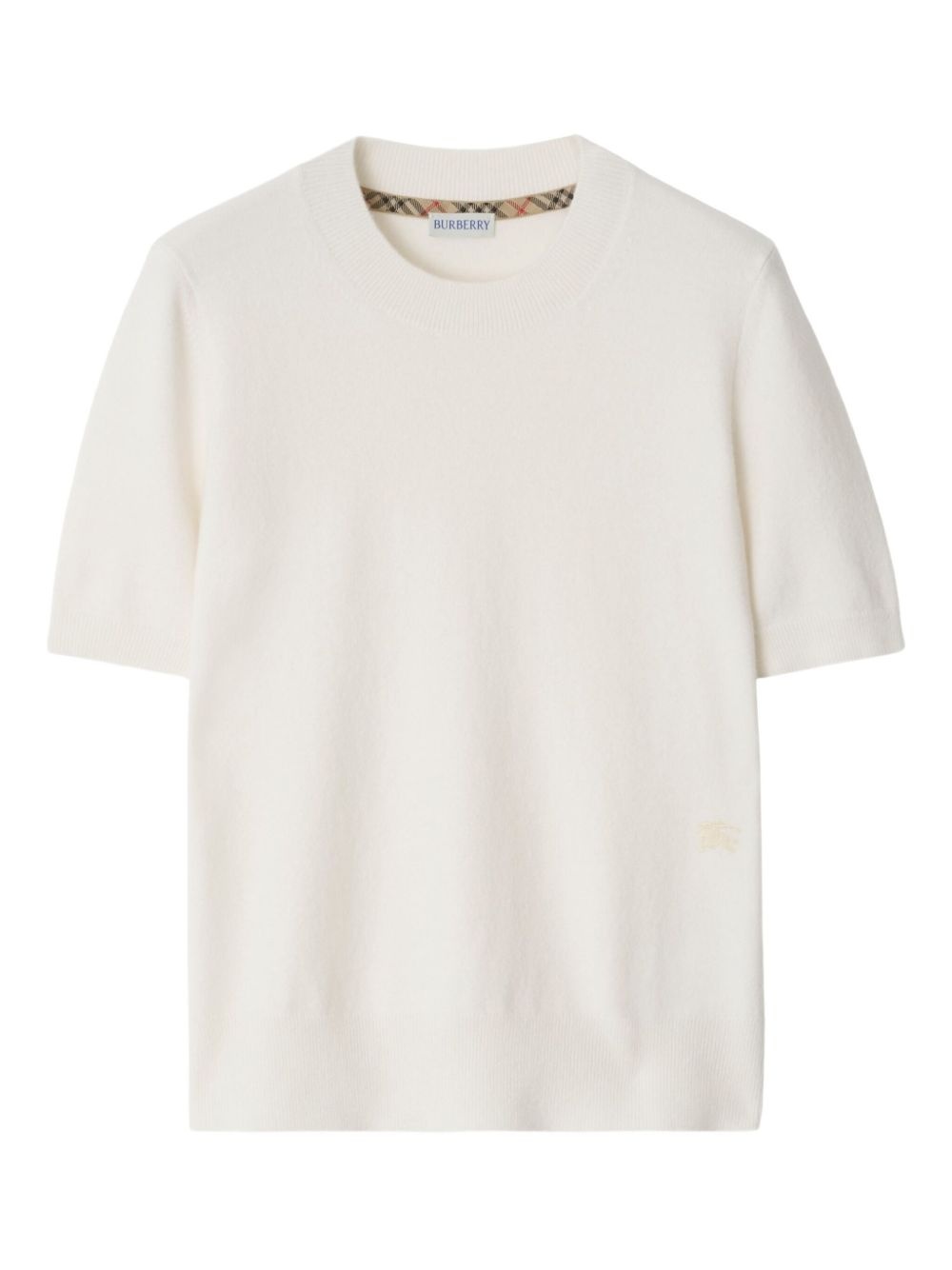 EKD knitted T-shirt Highlights - White - Ribbed trim - Round neck - Short sleeves - Straight hem Imported Composition Cashmere 95%, Polyamide 4%, Elastane 1%