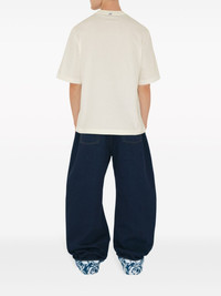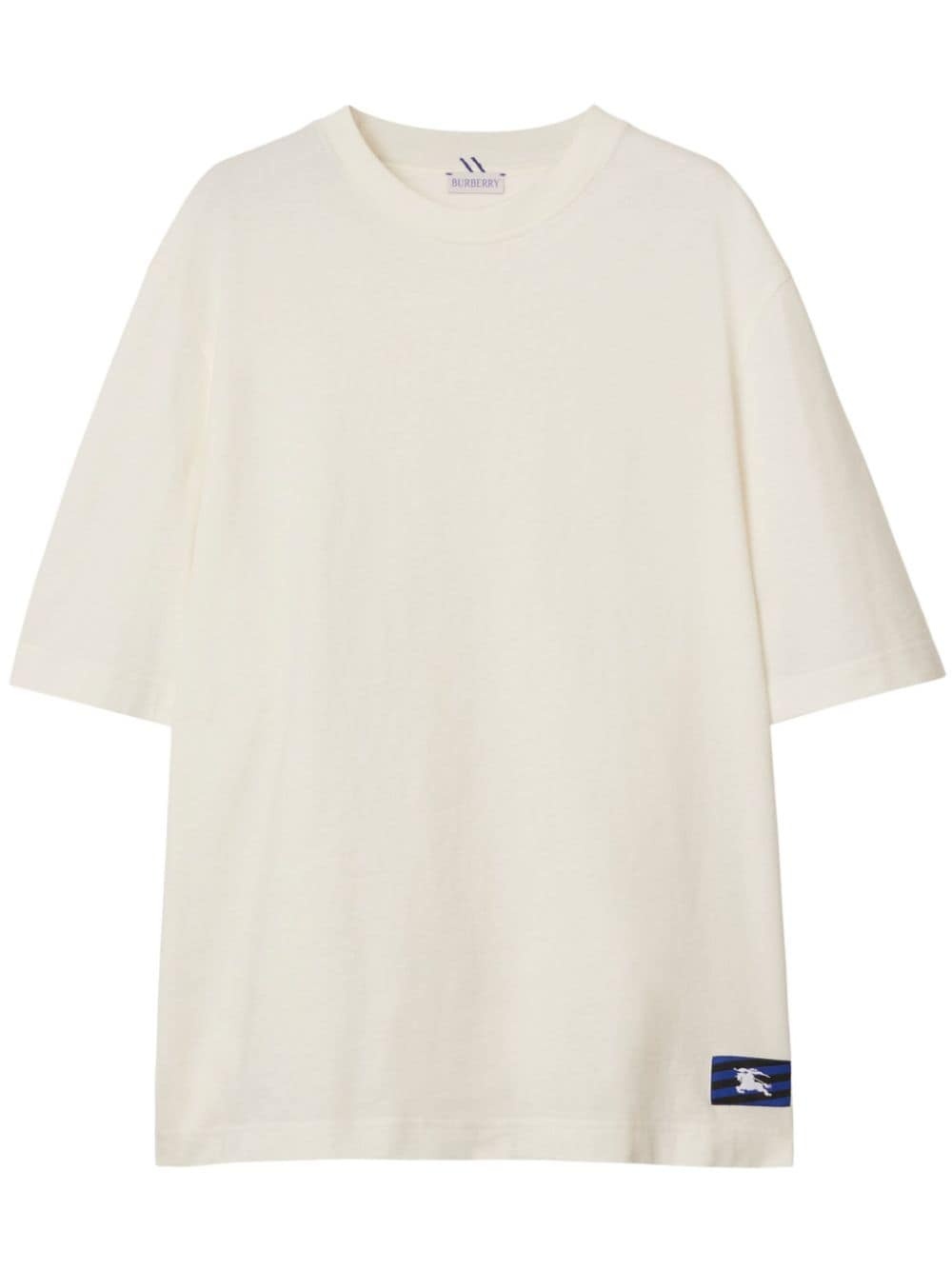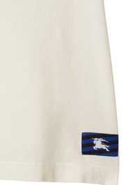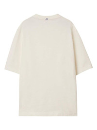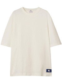 EKD logo-patch cotton T-shirt Burberry's Equestrian Knight Motif was first introduced in 1901, symbolising the brand's passion for travel and discovery. Decorating this off-white cotton T-shirt, the emblem appears in a patch at the hem as a reminder of the house's long history and continued creative exploration. Highlights - Off-white - Cotton - Signature equestrian knight motif - Logo patch to the front - Round neck - Short sleeves - Straight hem Imported Composition Cotton 100% Washing instructions Read Manufacturer Guidelines