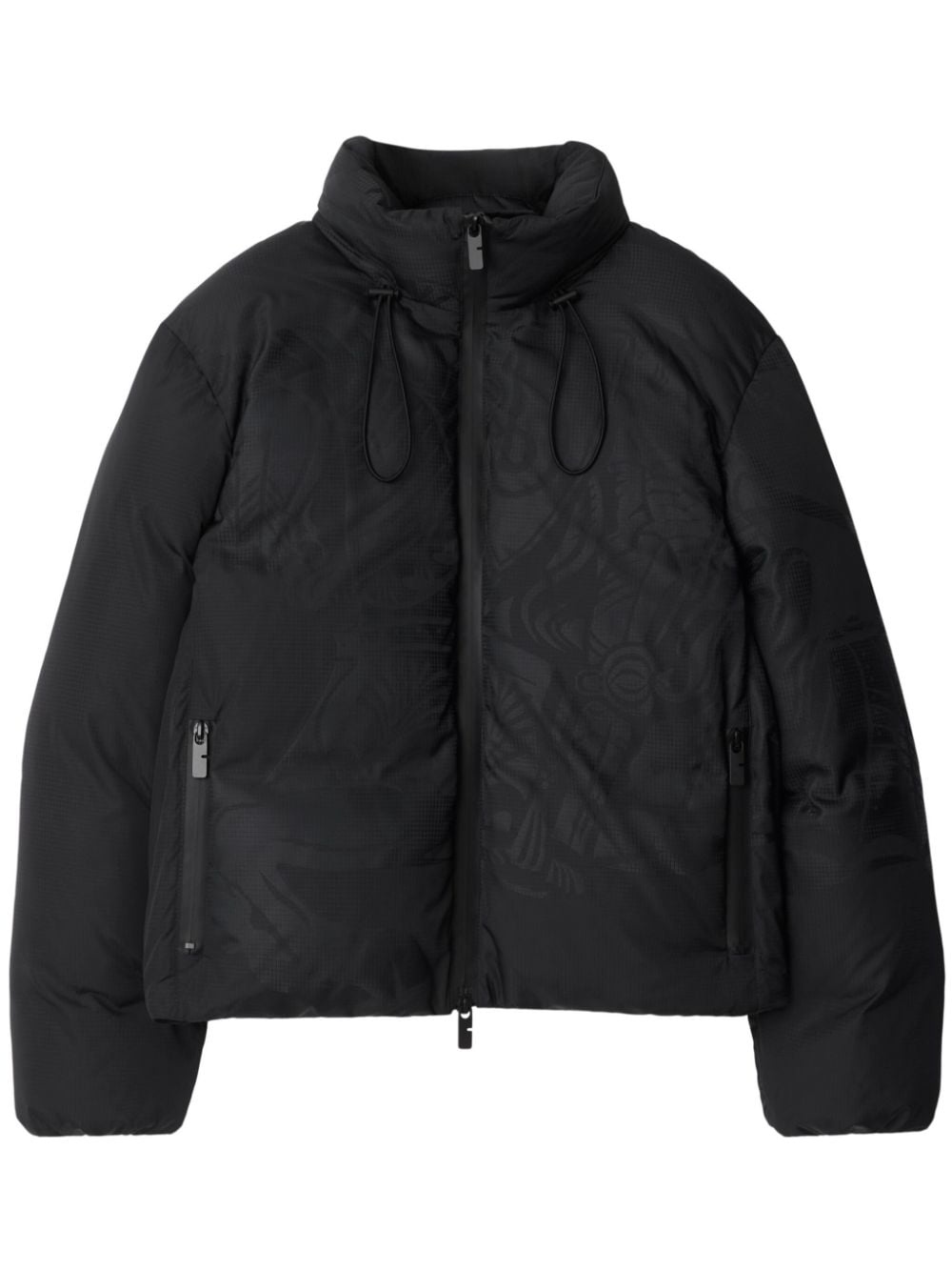 EKD puffer jacket Highlights - Black - Ripstop texture - Down-feather filling - Quilted - Front two-way zip fastening - Detachable hood - Drop shoulder - Long sleeves - Elasticated cuffs - Signature equestrian knight motif - Jacquard logo motif - Two side zip-fastening pockets - Straight hem Imported Composition Lining: Polyamide 100%, Polyester 100%, Goose Down 90%, Goose Feather 10% Outer: Polyamide 100% Washing instructions Read Manufacturer Guidelines