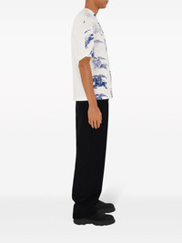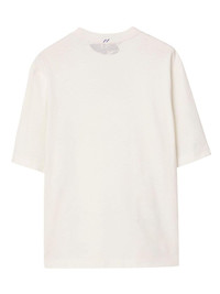 EKD stamp-print cotton T-shirt Burberry's Equestrian Knight Motif was first introduced in 1901, symbolising the brand's passion for travel and discovery. Decorating this off-white cotton T-shirt, the emblem appears in a stamp-style repeat print to the front as a reminder of the house's long history and continued creative exploration. Highlights - Blue/white - Cotton - Signature equestrian knight motif - Logo print to the front - Round neck - Short sleeves - Straight hem Made in Italy Composition Cotton 100% SIZE & FIT Measurement CHEST 41.73 in(106 cm) SLEEVE LENGTH 20.86 in(53 cm) LENGTH 26.77 in(68 cm) Shoulder Width 18.89 in(48 cm) Washing instructions Read Manufacturer Guidelines