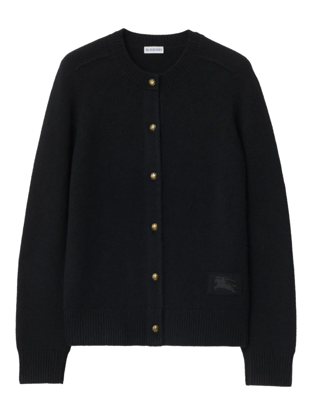 elbow-patch equestrian knight cardigan Highlights - Black - Round neck - Button fastening - Ribbed knit trim - Knitted equestrian knight detail - Elbow patches Imported Composition Brass 100%, Cashmere 97%, Polyester 2%, Elastane 1% Washing instructions Specialist Cleaning