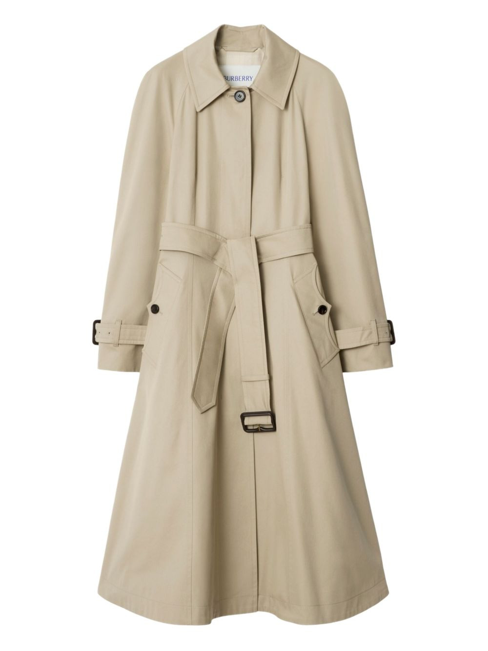 Ellingham raglan-sleeve belted trench coat Highlights - Beige - A-line shape - Raglan sleeves - Belted cuffs - Curlicue pockets - Single-breasted button closure Made in United Kingdom Composition Outer: Cotton 100%, Buffalo Horn 100%, Calf Leather 100% Lining: Cotton 100%, Cupro 100% Washing instructions Read Manufacturer Guidelines