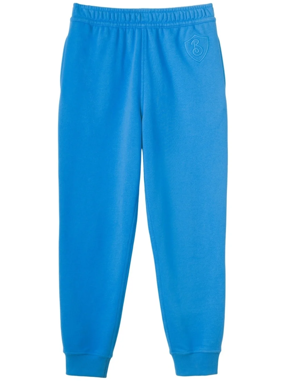 embroidered-letter motif cotton track pants blue cotton embroidered logo to the front elasticated waistband tapered leg rear welt pocket two side slit pockets Imported Composition Cotton 100%