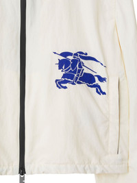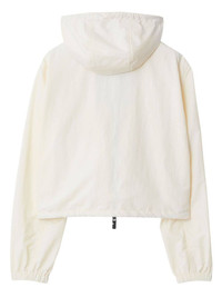 Equestrian Knight-applique cropped jacket This jacket from Burberry combines signature house codes with a modern style. It's cut from lightweight materials to a contemporary cropped profile and adorned with the brand's signature Equestrian Knight logo, a motif created in 1901. Highlights - White - Signature equestrian knight motif - Drawstring hood - Long sleeves - Elasticated cuffs - Front two-way zip fastening - Two side zip-fastening pockets - Cropped Imported Composition Polyamide 100%